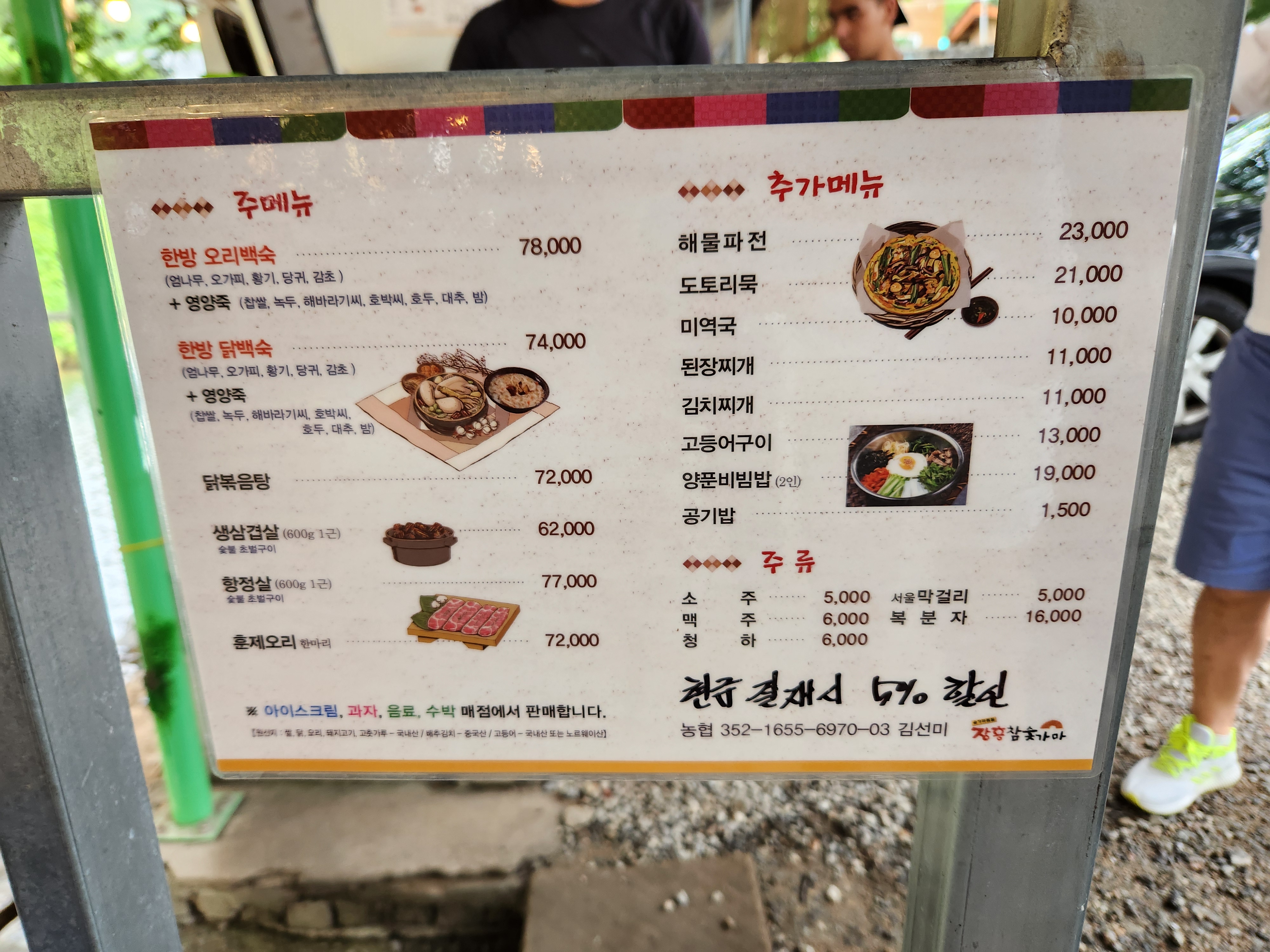 주메뉴는 오리백숙 또는 닭백숙이었고요~~ 저희는 오리백숙을 주문하였습니다.